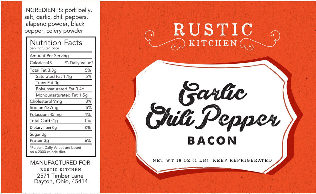 - 1 pound of Garlic Chili Pepper Bacon, 12 to 14 slices per pound